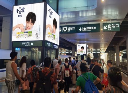 重慶西站候車層三棱柱廣告