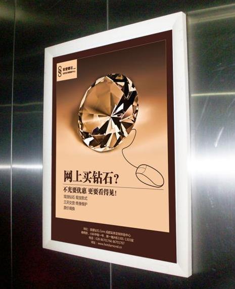 電梯框架廣告是指電梯轎廂內的廣告框,一般用來安裝廣告海報,起到廣告作用。電梯廣告框架是生活中最常見的電梯廣告類型,也最為普遍的類型,通常在商場、小區電梯內是常??梢钥匆姷囊环N廣告方式。在投放此類廣告商一定要在海報設計上富有創意,采用多圖少字的設計,信息量充足,這樣才能達到傳播的效果。