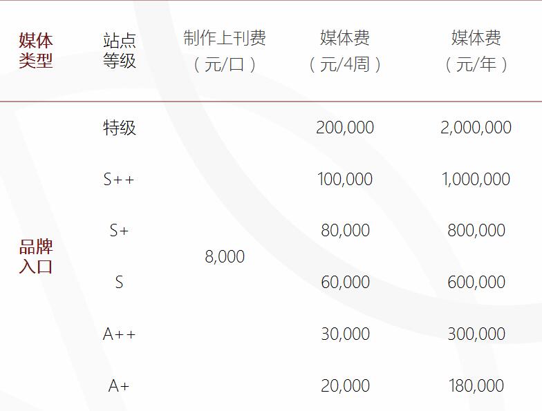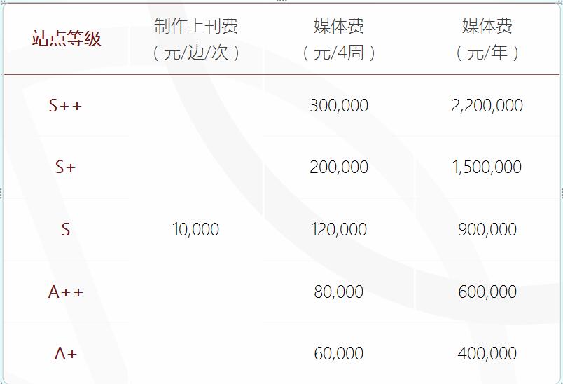 刊例價(jià)格:詳見(jiàn)下表(折扣詳細(xì)請(qǐng)電詢)