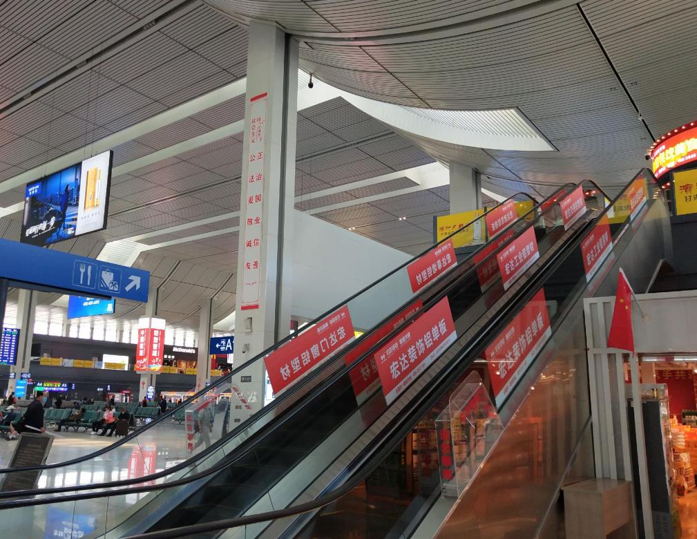 蘭州西客站候車室通往商業(yè)夾層扶梯廣告