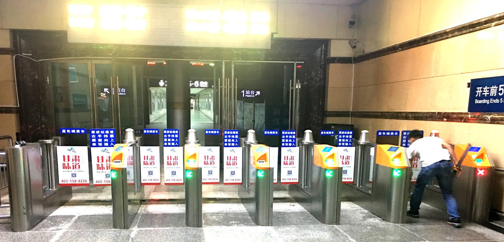 蘭州火車站候車室進(jìn)站閘口感應(yīng)門廣告