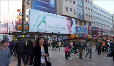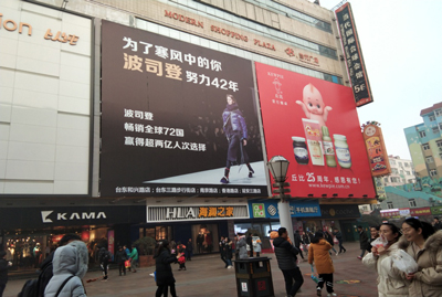 | 青島臺(tái)東三路步行街大牌 媒體形式:外打燈墻體大牌 媒體位置:青島臺(tái)東三路步行街當(dāng)代商城墻體南側(cè)(中間位) 區(qū)域?qū)傩裕呵鄭u臺(tái)東商圈、步行街 媒體規(guī)格: 14.1m(w) X14.7m(h) =207㎡ 交通流量:36萬(wàn)人次/天 亮燈時(shí)間:4小時(shí)/天(3個(gè)月以內(nèi)發(fā)布無(wú)照明) 媒體刊例:15萬(wàn)/月 媒體簡(jiǎn)介:此媒體位于步行街中心路口,是進(jìn)入步行街的必經(jīng)之路,視覺(jué)效果絕佳。臺(tái)東步行街現(xiàn)為“全國(guó)著名商業(yè)街”、”國(guó)家AAA景區(qū)”,是青島市人流量最大的地方,最為繁華的商業(yè)中心,最高峰日客流量達(dá)60萬(wàn)人次,沃爾瑪、利群、萬(wàn)達(dá)、萬(wàn)千百貨、當(dāng)代商城、國(guó)美、蘇寧、千川百貨、臺(tái)東服裝城、電子產(chǎn)品城、多個(gè)手機(jī)賣場(chǎng)等大型商場(chǎng)分布于此,是人們購(gòu)物、休閑的良好場(chǎng)所,也是外地來(lái)青旅游者駐足之地。 |