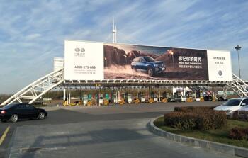 廣告位置:機場停車場收費站出入口 正迎面 廣告編號:SY-LM02 廣告規(guī)格:10m×60m×2面=1200m2 數(shù)量:1 廣告形式:收費站龍門 媒體價格:1360萬元/年/座 |