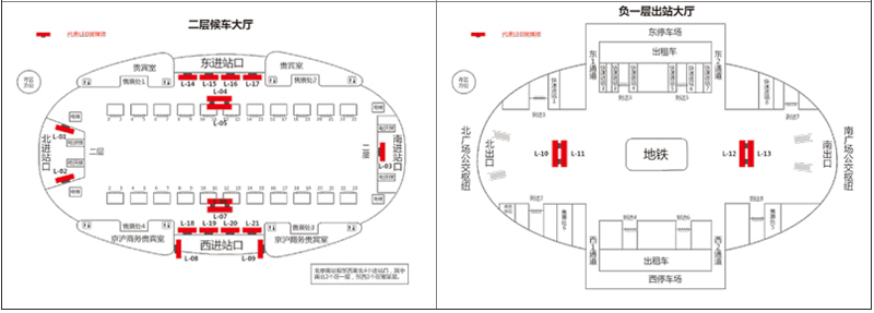 北京南站地下一層燈箱廣告和候車廳廣告區(qū)別