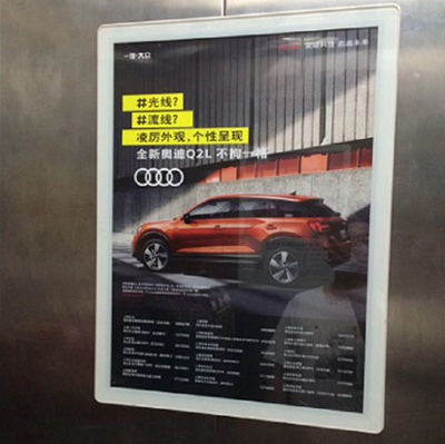 電梯平面媒體是設(shè)置于電梯轎廂、候梯間內(nèi)的平面鏡框,她具有零干擾、可平視、親和力強的特點,充分利用受眾乘(候)梯的“途中時間”,填補電視、報刊等傳統(tǒng)媒體的空白,因有效閱讀而保證極高的廣告到達(dá)率。
