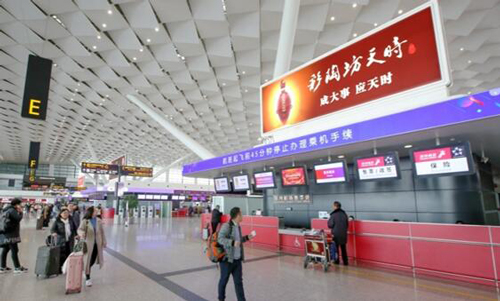 媒體價格:600萬/組 位于四層出發辦票大廳安檢通廊上方,旅客必經之路