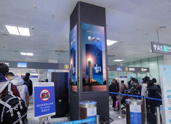 珠海金灣機場廣告-二層國內出發大廳安檢前包柱燈箱廣告